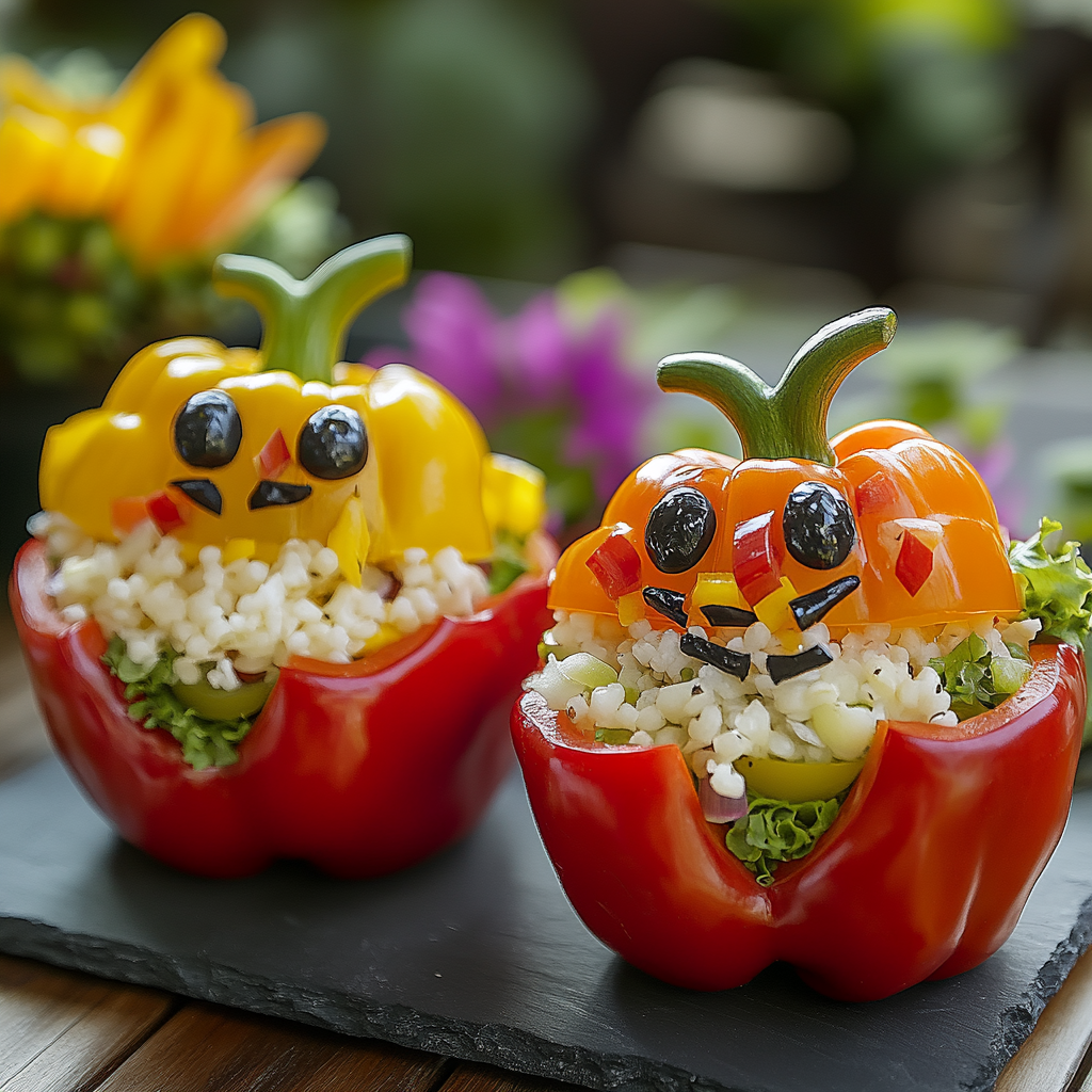 Monster Bell Pepper Salad Cups are not only fun to make but also a delightful way to present a colorful dish at your table. These vibrant salad cups can be served in various creative ways that enhance their appeal and flavor.